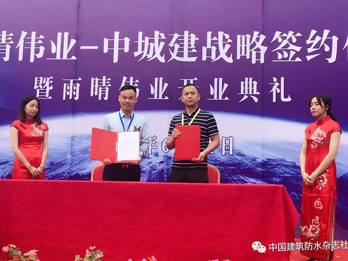 2018年6月21日, 湖北雨晴偉業防水技術發展有限公司開業慶典暨中城建戰略簽約儀式活動現場賓客云集,人頭攢動,場面火爆、掌聲如雷。這標志著雨晴偉業從今天起正式的面向大眾,面向市場,也意味著雨晴偉業工廠的正式運營。