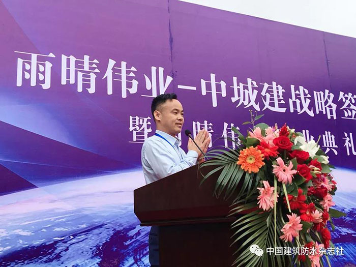 簽約儀式結束,湖北上德偉創防水工程有限公司的總經理李偉代表客戶進行了講話,他說自與雨晴合作以來,雨晴集團給了所有客戶在價格、質量、服務等全方位的支持,讓其切實感受到了雨晴集團始終將客戶的利益放在第一位,想客戶所想,急客戶所急,認為這就是雨晴的成功所在。